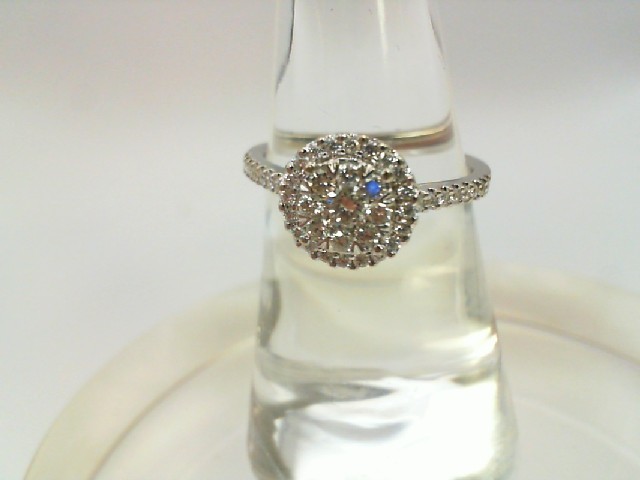 BIN: F 14KT White Gold 1.80DWT Apx. 1ctw ROUND DOUBLE HALO RING WITH ACCENT DIAMONDS IN BAND