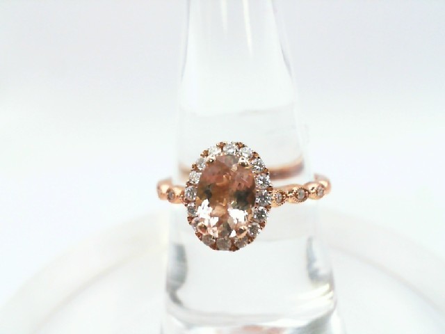BIN: F 10KT Rose Gold 1.50DWT Oval Morganite in Diamond Halo setting